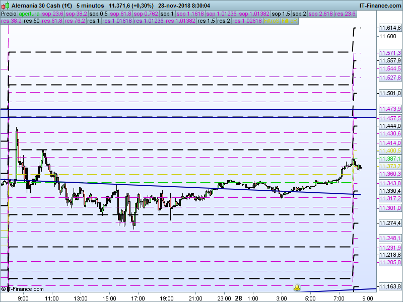 DAX Xetra,08:25:24.- Día de indecisión con vela de muy poco cuerpo y amplias mechas. Mientras estemos entre los SORs 11472 y 11223 no adoptaremos predisposición y solo operaremos en tramos cortos a través del mapa de SORs intradiarios.