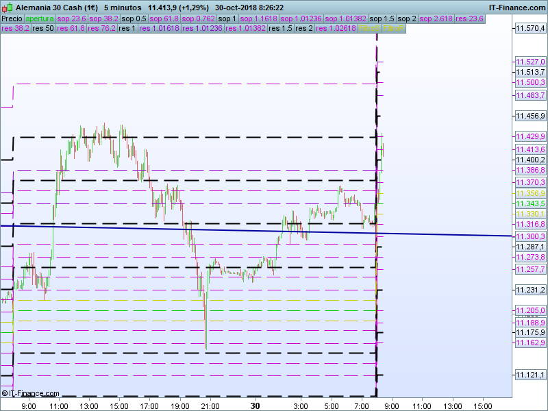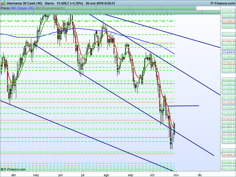 DAX Xetra, 08:23:12- Ayer tuvimos rechazo en el refugio 11433 nivel en el que estamos en el momento en que escribimos estas líneas. Muy probablemente vayamos al SOR 11472. Nos sigue interesando ver cierres por encima del SOR 11733 para poder pensar en la formación de un suelo.