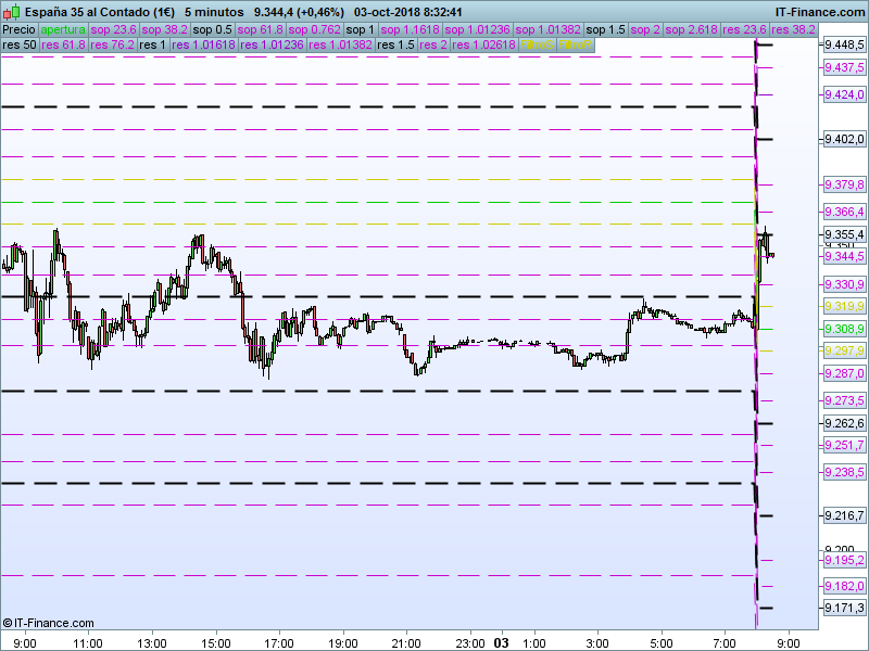 Ibex 35,08:31:53. Cierre lejos del 9379, mientras se mantenga por debajo vamos a pensar en recorridos hasta el 9165 en primera instancia.