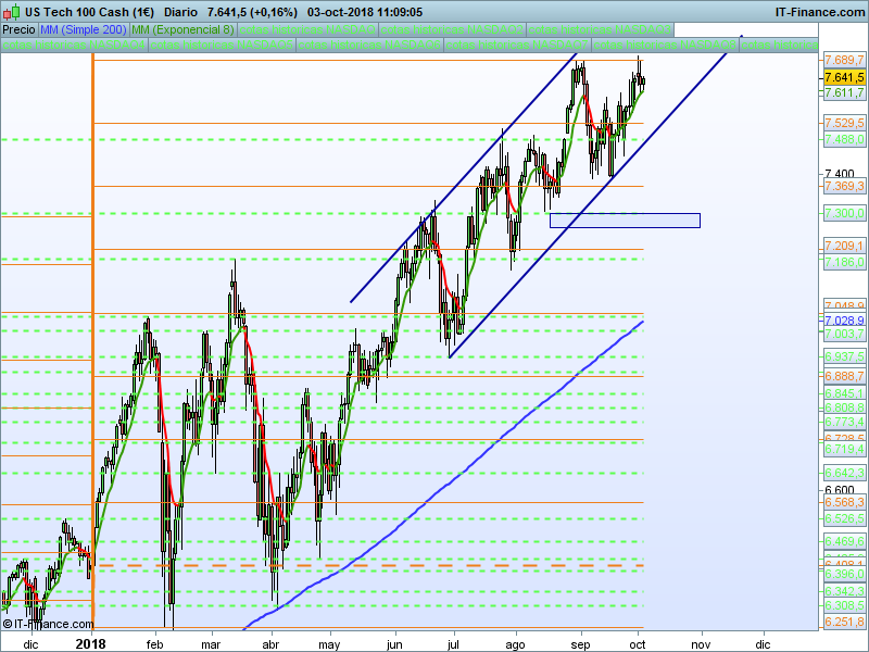 NASDAQ100, 11:07:33.- De más a menos en la sesión de ayer, seguimos con cierres por debajo del SOR 7689, mientras estemos por debajo hay que ir con cautela.