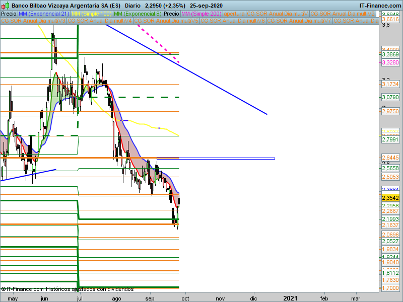 #BBVA, giro en confluencia de SOR anual y trimestral. Publicado por Julio Fdezel 28 septiembre, 202028 septiembre, 2020Punto de reversión en SOR 2.6445.Seguir leyendoArtículo anterior #IBEX, mapa operativo intradiario.Artículo siguiente #SANTANDER , seguimos colocando el PRT en la zona de 2€.