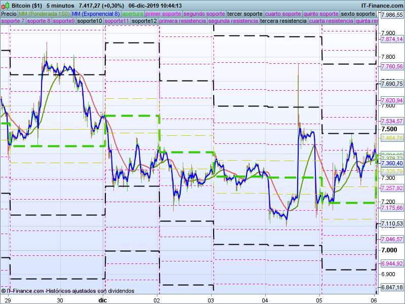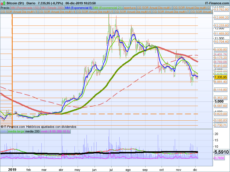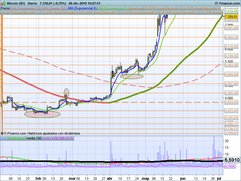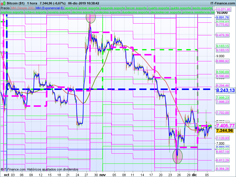 Hasta ahora no había realizado el seguimiento de las criptomonedas por una razón muy sencilla, mi sistema no estaba preparado para ello. Nos encontramos con un activo de muy alta volatilidad que hacía que a la menor variación de la cotización, el precio dejase sin efecto alguno los mapas operativos trazados con SORs. Es lo mismo que sucede con el crudo con el complejo SOR intradiario, los días que tiene una fuerte volatilidad el complejo se nos queda «pequeño» enseguida. Curiosamente fue en la búsqueda de solucionar este problema con el crudo cuando me animé a implementar el desarrollo de los SORs en las criptos.
