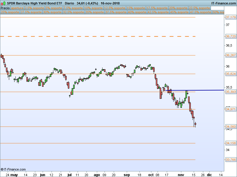 High Yield.- La tendencia bajista de las cotizaciones continua intacta. Solo la rotura del SOR 35.393 nos avisaría de un posible cambio de tendencia.