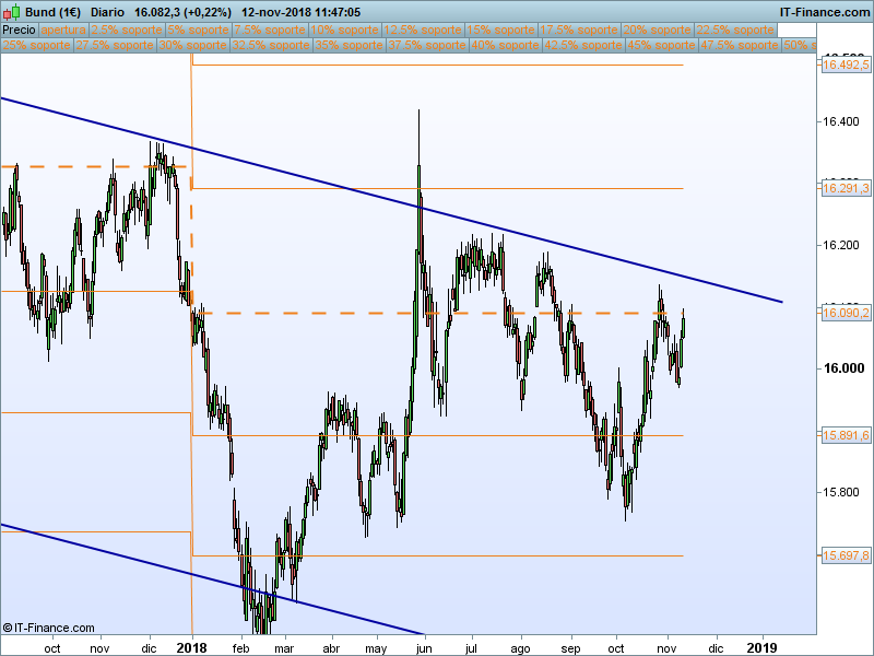 Europa, Bund.- El bund está en el PAA, cierres por encima de este punto nos abren la puerta a buscar el 16291 y romper la parte alta del canal. Mientras permanezcamos por debajo, predisposición a buscar 15891.