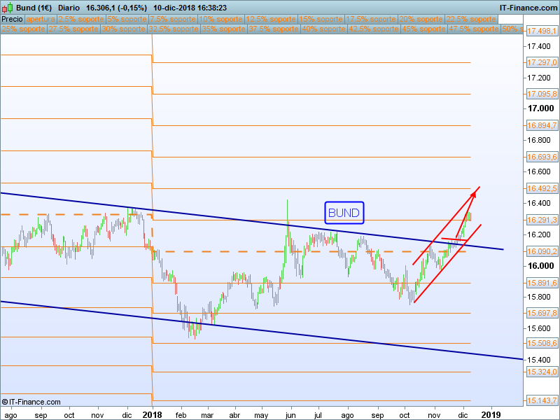 En Europa nos seguimos fijando en el Bund, que sigue inmerso en su tramo alcista con objetivo puesto en el SOR 16492.