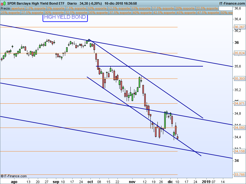 Mucho ojo que no es oro todo lo que reluce, debemos mantenernos al margen de los bonos de alto rendimiento o High Yield. La estructura es claramente bajista tanto en Europa como en EE.UU y no hay señal ninguna que nos anuncie la posibilidad de giro.