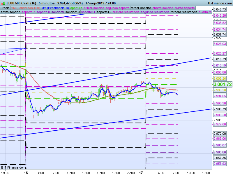 A los operadores de más corto plazo, intradia y scalplers, como siempre les invito a tomar en consideración el complejo SOR intradiario, utilizando como filtro operativo el precio de apertura de la sesión. Para el día de hoy, este es el conjunto de cotas calculadas con PAD 3001.72.