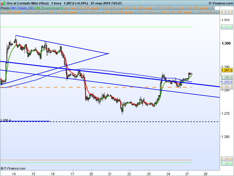 Tras rechazo en el PAA 1281, volvemos a situarnos por encima de este nivel. Mientras estemos en esta situación, podemos mantener predisposición alcista.