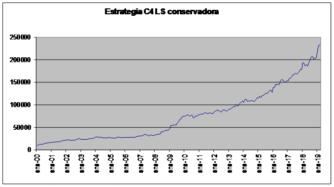 Ayer publicamos los resultados de la estrategia C2 Ópera con motivo del cierre trimestral, hoy hacemos lo propio con la C4 LS conservadora que tiene en cuenta los patrones estacionales.