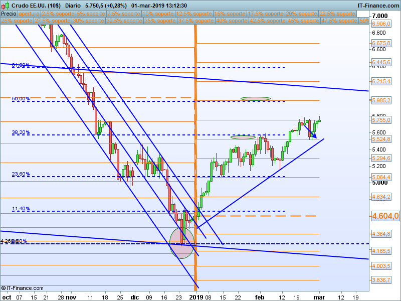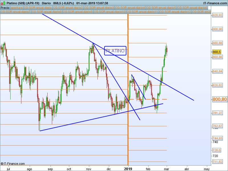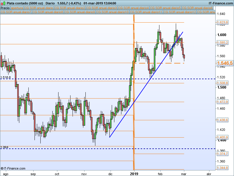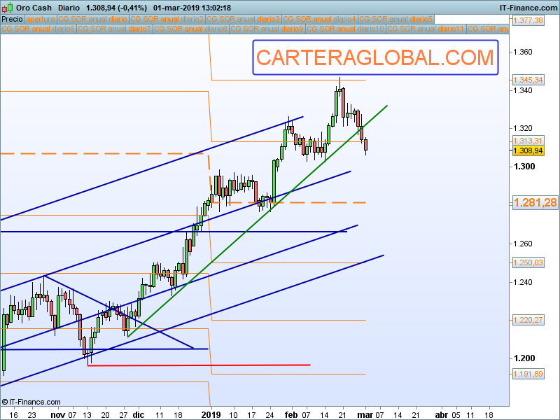 Hemos perdido la LT 2-4 (verde) y estamos haciendo lo propio con el SOR 1313, si no tuviésemos el PAA2018 tan cerca, 1303, tomaríamos predisposición bajista hasta el precio de apertura anual 2019. Por nuestra parte damos por concluido el patrón estacional alcista. Marzo suele ser un mes malo para este activo.