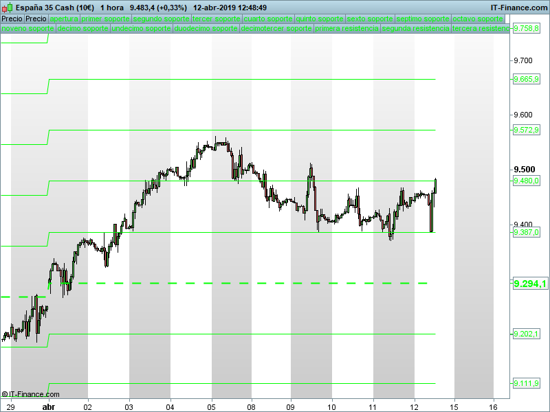 De momento, en lo que llevamos de mes, impecable el comportamiento del Ibex respecto al complejo de SORs mensuales. Hizo patrón de fallo al no llegar a alcanzar el 9572, completando ciclo en el 9387.