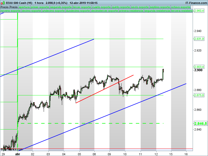 De momento estamos luchando por alcanzar en el día de hoy el nivel 2903, que sería la segunda resistencia calculada para este mes. Dada la relación con los niveles de grado mayor, una vez superada deberíamos buscar incluso la zona 2960 para completar recorrido.