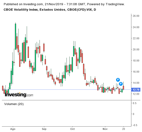 Si miramos el indicador de volatilidad por excelencia, el VIX, vemos que ni se ha inmutado, permanece anclado en el importante nivel de soporte de 12.