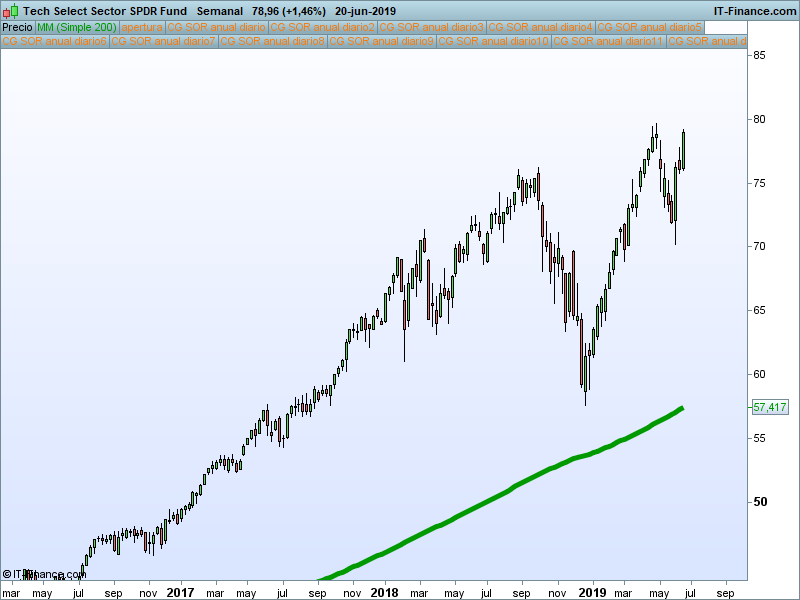 Tercero, ¿cómo le va al sector director?. El principal motor de empuje de todo el mercado alcista en el que nos encontramos desde el 2009 ha sido, que duda cabe, el sector tecnológico, el miércoles ya lo vimos en nuestro repaso sectorial, en este momento no parece mostrar síntomas de debilidad.