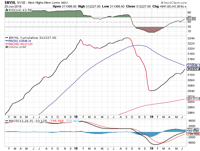 Sin embargo, la curva NHNL no muestra el mismo desempeño, existe una clara divergencia bajista en este sentido, mientras el SP500 está en zona de máximos, este indicador se encuentra lejos de los niveles alcanzados en 2018.