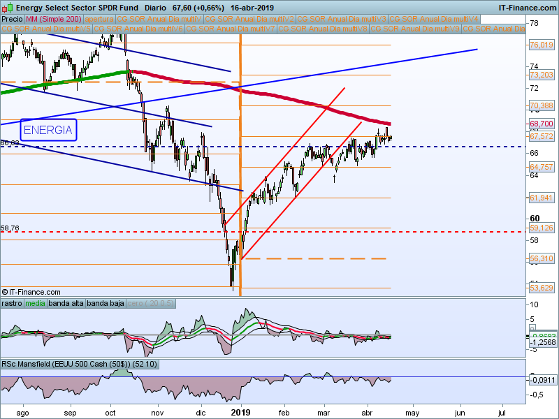 Poca fuerza le queda al sector de la energía a punto ya de alcanzar la media de 200 sesiones. Mientras esté por encima de 64.75 predisposición alcista-