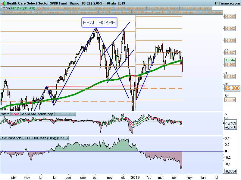 Ya veníamos comentando de la debilidad de este sector y ha terminado de confirmar rompiendo con fuerza la media de 200 sesiones. Si no encuentra apoyos en el SOR 87.43 esperaremos al precio de apertura anual en 85.30
