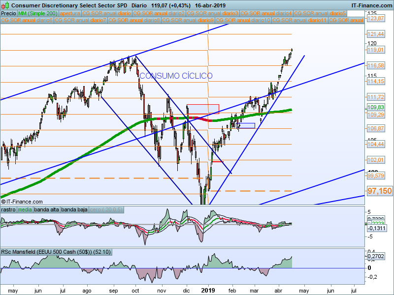 Sector con mucha fuerza que también supera máximos históricos. Vamos a mantener predisposición alcista mientras estemos por encima del SOR 116.58.