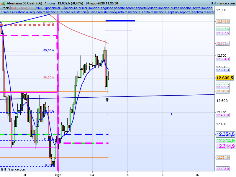 #DAX al minuto. Alternativa bajista. Publicado por Julio Fdezel 4 agosto, 202017 junio, 202111:26:22Siempre debemos tener un plan B por si nuestro mejor recuento no prospera. En caso de pérdida de mínimos del día, tendríamos un siguiente nivel objetivo por debajo en 12438Seguir leyendoArtículo anterior Recuento Eurusd, elaborado por compañero del Club de Bolsa.Artículo siguiente TRADING LIVE 11.30. Buscando la continuidad alcista.