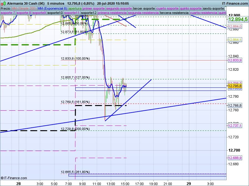 #DAX al minuto. ¿corrección antes de continuar cayendo?. Publicado por Julio Fdezel 28 julio, 202017 junio, 202115:10:30Parece que el movimiento impulsivo que terminó por debajo del SOR intradiario puede ser una onda 3, por tanto estaríamos dentro de una onda 4. Hemos trazado una nueva 0B, veremos si perdemos los mínimos del día.Seguir leyendoArtículo anterior #DAX al minuto, actualización gráfico M5 y receso hasta las 15.00.Artículo siguiente #DAX al minuto, seguimos dentro de la corrección.