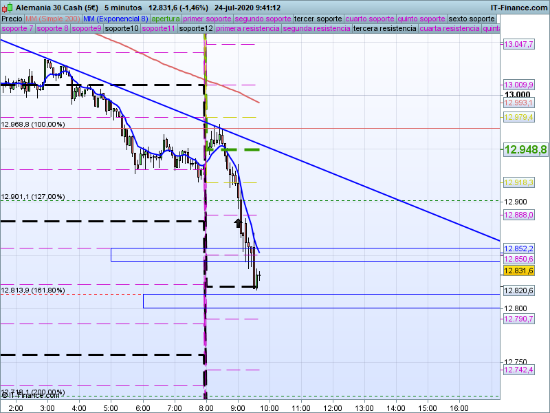 #DAX al minuto: en el primer SOR intradiario. Publicado por Julio Fdezel 24 julio, 202017 junio, 202109:41:38También muy cerca de la extensión 161.8%, el recorrido de mayor probabilidad ya se ha realizado. Toca esperar a ver cierre de velas horarias, para ver si tenemos rechazo en SOR anual o si por el contrario confirmamos movimiento por debajo.Seguir leyendoArtículo anterior #DAX al minuto: De repente llegan las prisas.Artículo siguiente #DAX al minuto, nos mantenemos en primer SOR intradiario.