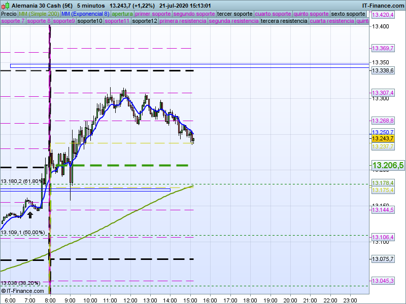 #DAX al minuto. Nos preparamos para la apertura americana. Publicado por Julio Fdezel 21 julio, 202018 junio, 202115:11:37El precio frenó su avance en el nivel intradiario 13307. En este punto estamos pendientes de la posibilidad de vuelta al precio de apertura diario. Recordamos que hoy el nivel importante no es el PAD, sino el PAA en 13170.Seguir leyendoArtículo anterior #DAX al minuto, hacemos un receso hasta las 15.00. Dejamos el último mapa que subimosArtículo siguiente #DAX al minuto. Buscando el precio de apertura diario con estructura impulsiva bajista.