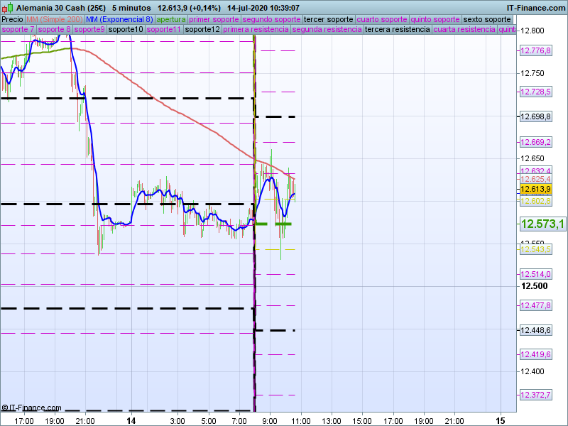DAX al minuto. Precio estable por encima de PAS Publicado por Julio Fdezel 14 julio, 202018 junio, 2021Mientras estemos por encima de PAS vamos a trabajar con escenario de onda C dentro de la corrección que comenzó en los mínimos de ayerSeguir leyendoArtículo anterior DAX al minuto. La vela de h1 mantiene el cierre por encima de 12543. Zona de control.Artículo siguiente DAX al minuto. Intento de romper zona de lateral.
