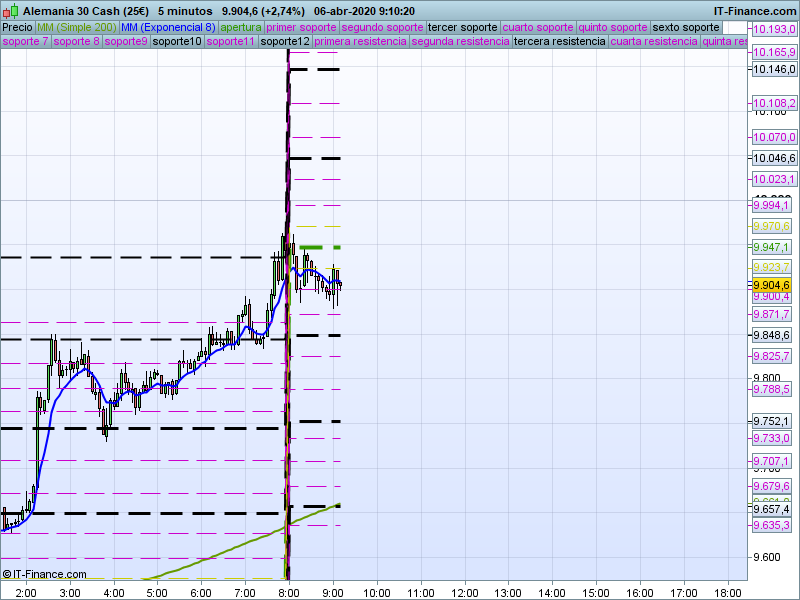 DAX: Mapa operativo intradiario Publicado por Julio Fdezel 6 abril, 202018 junio, 2021Precio de apertura y principales niveles intradiarios para el DAX.Seguir leyendoArtículo anterior TRADING LIVE 08.00. Inicio semanal alcista, ¿hasta donde?.Artículo siguiente IBEX, cara y cruz.