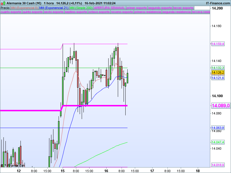 Se trata de un seguimiento exhaustivo del índice alemán DAX30 bajo un enfoque de muy corto plazo en gráficos de 5 minutos en el que utilizamos todos nuestros recursos técnicos y en donde propondremos alternativas, objetivos y recorridos de máxima probabilidad en función del movimiento que el precio vaya desarrollando durante el día.