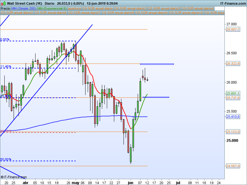 No se ha alcanzado el nivel planteado en el SOR 26323, mientras estemos por encima del 25737 podríamos mantener predisposición alcista buscando posibles zonas de giro en donde poder incorporarnos hasta objetivo.