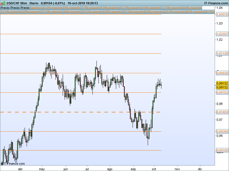 UsdChf.- Si nos fijamos a la izquierda del gráfico, el precio entre los SORS anuales 0.99920 y 0.98702 se pasó tres meses lateralizando, mejor confirmar roturas para plantear una operación más limpia.