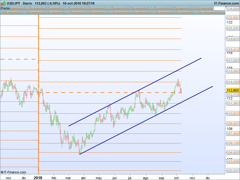 UsdJpy.- El precio retrocedió al llegar al SOR anual 114.183, zona de especial relevancia el pasado año. Mientras no perfore y cierre con claridad el PAA, vamos a considerar que se trata de una simple corrección.