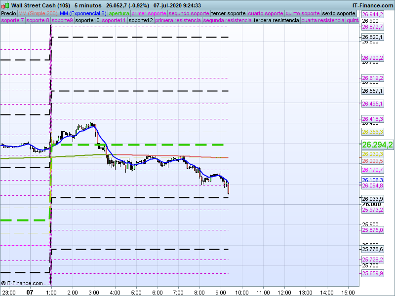 DJI: mapa operativo intradiario. Publicado por Julio Fdezel 7 julio, 20205 julio, 2021Seguir leyendoArtículo anterior NASDAQ: mapa operativo intradiario.Artículo siguiente TRADING LIVE 11.30. DAX cumple su objetivo correctivo, ¿seguimos subiendo?