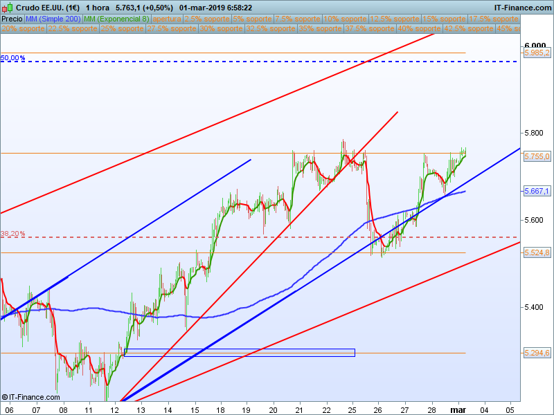 Estamos atacando el SOR 5755, con máximos superiores a los de la pasada semana tendríamos vía libre hasta el SOR 5985, punto de reversión en 5524 en caso de suceder esto.