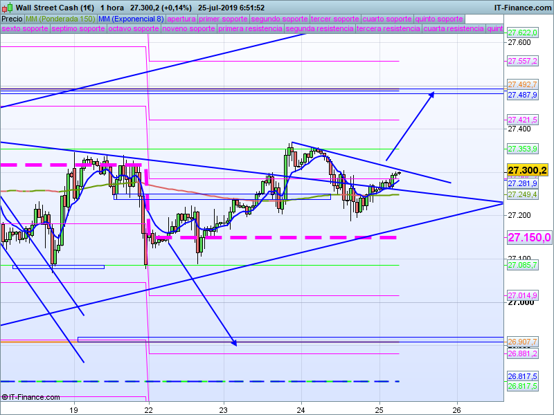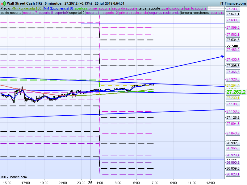 Como siempre, dentro de una operativa intradiara, debemos fijarnos en el filtro del precio de apertura diario (27 262) para mantener el sentido de nuestra predisposición operativa. Estos son los niveles calculados para el día de hoy.