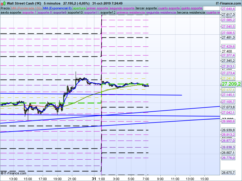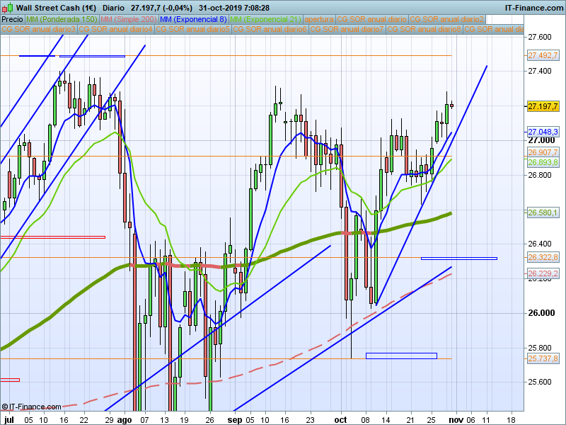 Para operaciones de muy corto plazo, intradia o scalping, o para afinar aún más las entradas y objetivos, recomendamos el uso del complejo SOR intradiario, partiendo del precio de apertura que hoy tendremos en 27209.