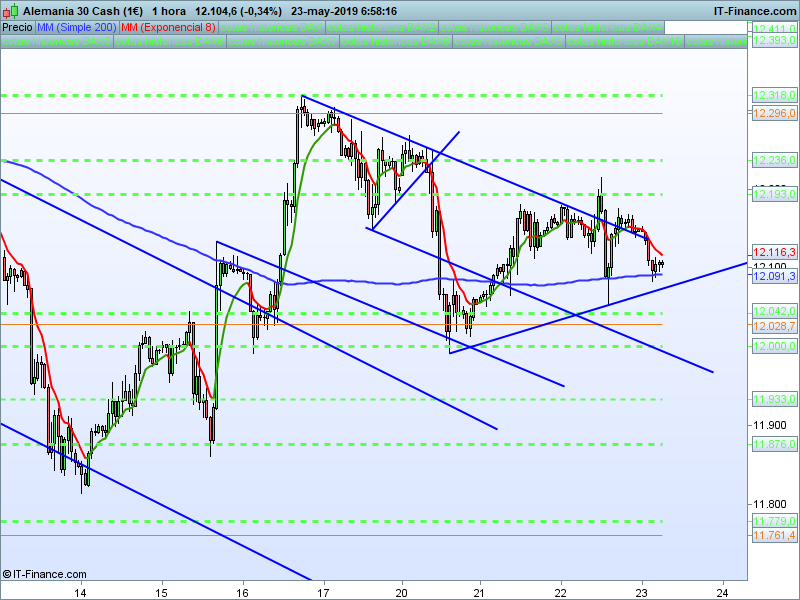 Seguimos lateralizando lejos de los puntos focales, los SORs 12296 y 12028. Cierres por debajo del 12028 nos animan a pensar en un nuevo tramo bajista con objetivo 11761, si por el contrario vemos la superación del SOR 12296, el siguiente nivel a controlar sería el SOR 12563