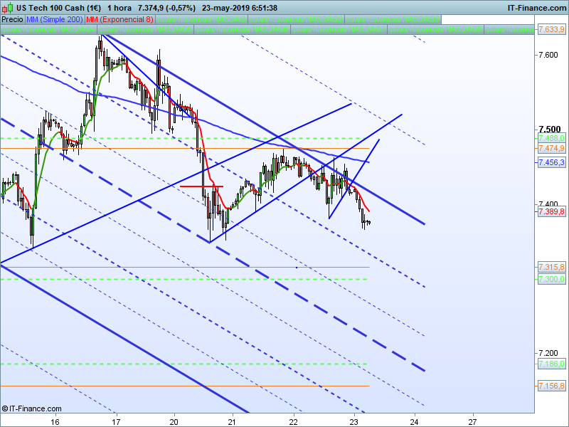 Seguimos con predisposición bajista mientras estemos por debajo de 7475, primer objetivo el SOR 7315