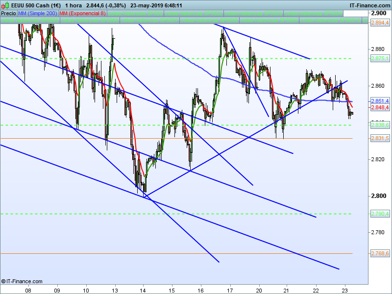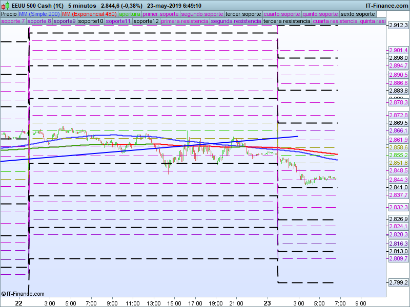 Si pasamos a Wall Street, ayer se aguantaron los niveles de referencia a muy corto plazo, en el SP500 el precio de apertura trimestral en 2847 y en el DJI el SOR anual 25738. Como decimos, en el momento de escribir estas líneas ambos niveles se están perdiendo.