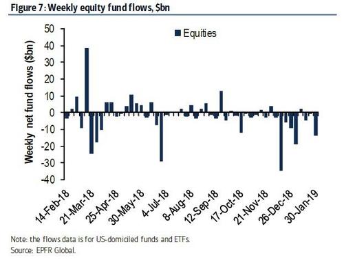 En EE.UU, según leemos en zerohedge.com, hemos tenido otro mes de grandes salidas de fondos, pese a ser el mes de Enero más alcista que se recuerda en varias décadas, vean el siguiente gráfico: