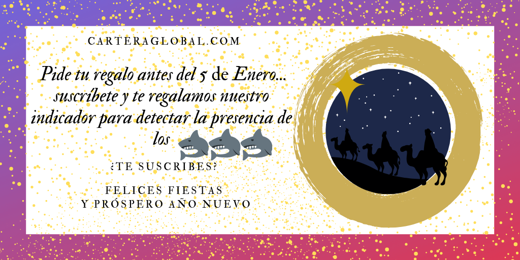 ÚLTIMAS HORAS!!! Publicado por Julio Fdezel 5 enero, 20195 enero, 2019Este REGALO es otro motivo más para suscribirte a CARTERAGLOBAL.COM, pero solo hasta el 5 de Enero!!!Si aún no lo has hecho, puedes suscribirte desde este enlace . Se lo daremos a SS.MM los Reyes Magos para que os lo envíen!!!!Seguir leyendoArtículo anterior ¿El dato de NFP? Noooo, ha sido PowellArtículo siguiente Crónica de la semana.