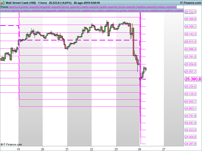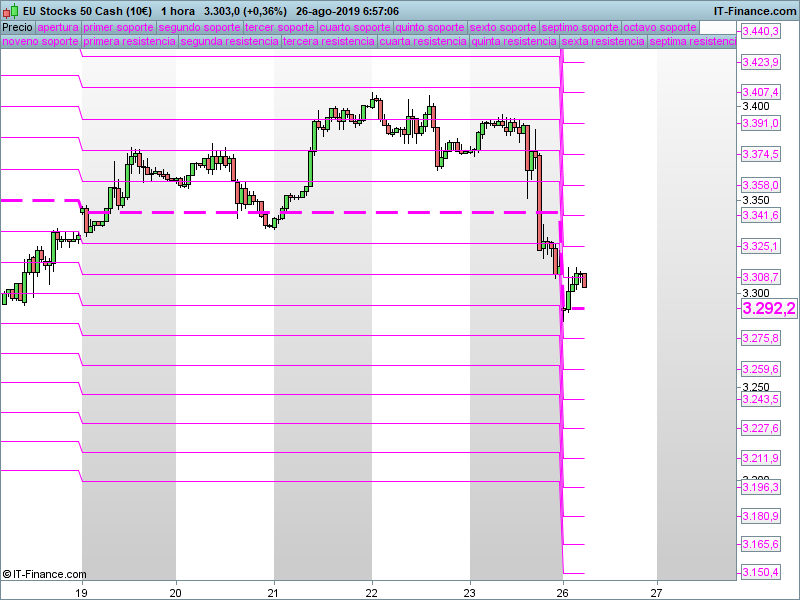 Estos son los SORs semanales, 26/08/2019 Publicado por Julio Fdezel 26 agosto, 201926 agosto, 2019Nasdaq100SP500Dow Jones DAX XetraIbex35Stoxx50 Seguir leyendoArtículo anterior DAX, más difícil todavía. Apertura de mercados.Artículo siguiente Oro, ¿corrección menor o mayor?. Apertura de mercados.