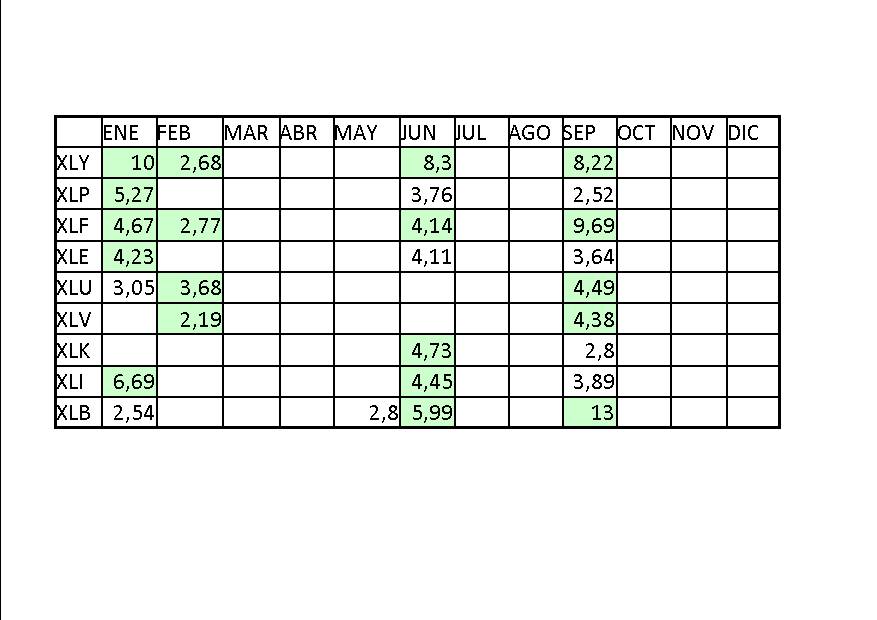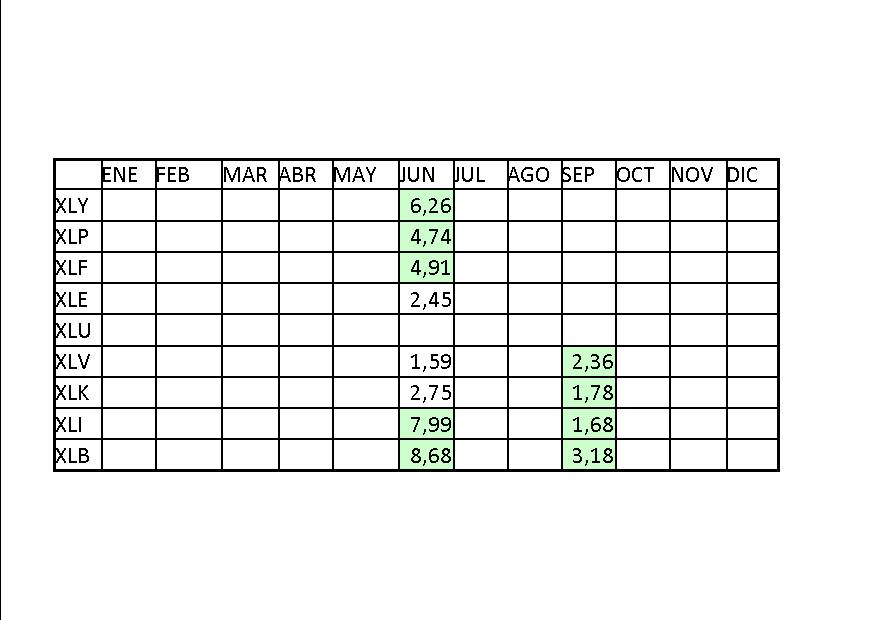 Cómo vemos, el mes de junio ofrece unos resultados bastante alentadores, llegando incluso a descartar sectores al quedarnos con los 5 más consistentes. En septiembre nos tenemos que conformar con 4.