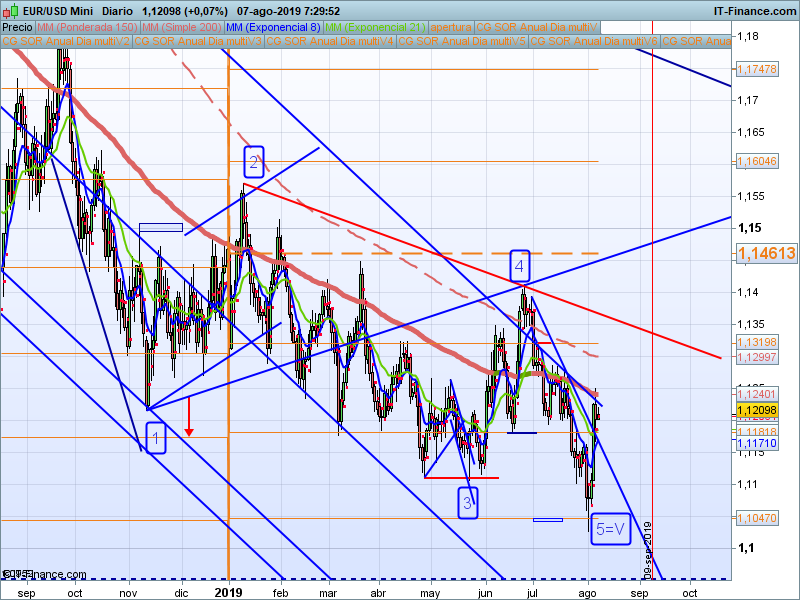Externamente, tenemos las presiones de Donald Trump hacia la FED para buscar un debilitamiento del dólar americano, como respuesta a la devaluación del yuan. Por este motivo pensamos que tenemos un entorno propicio para proponer un primer objetivo claro en el precio de apertura anual: 1.1461.