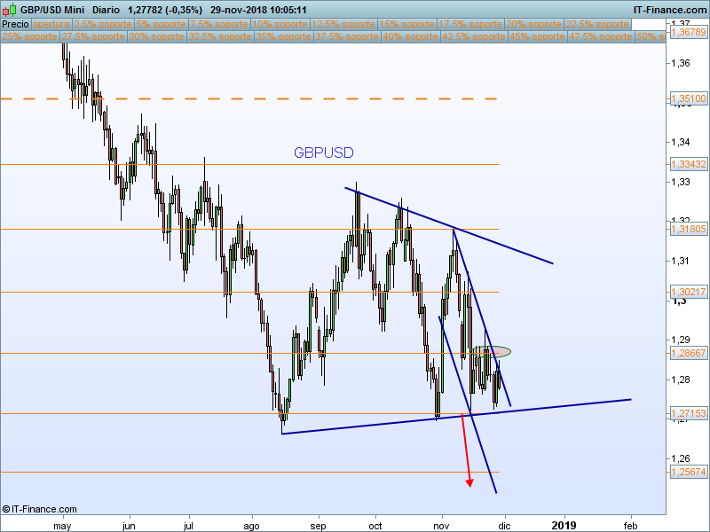 GbpUsd.- Seguimos atentos a la posible rotura del SOR 1.27153 para intentar buscar un nuevo tramo a la baja que nos lleve hasta el SOR 1.25674.