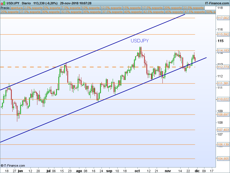 UsdJpy.- El nivel a vigilar sigue siendo el PAA 112.773. Si esto ocurriese nos estaría confirmando rotura del canal y un debilitamiento estructural de la secuencia de máximos y mínimos crecientes que venimos trayendo.
