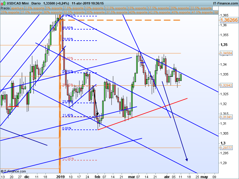 Llevamos varias sesiones lateralizando sobre el SOR 1.3294. La tensión sigue siendo bajista, estamos esperando cierres por debajo de este SOR para adoptar predisposición operativa que nos lleve en primer lugar al SOR 1.3134 y en extensión al 1.2977.