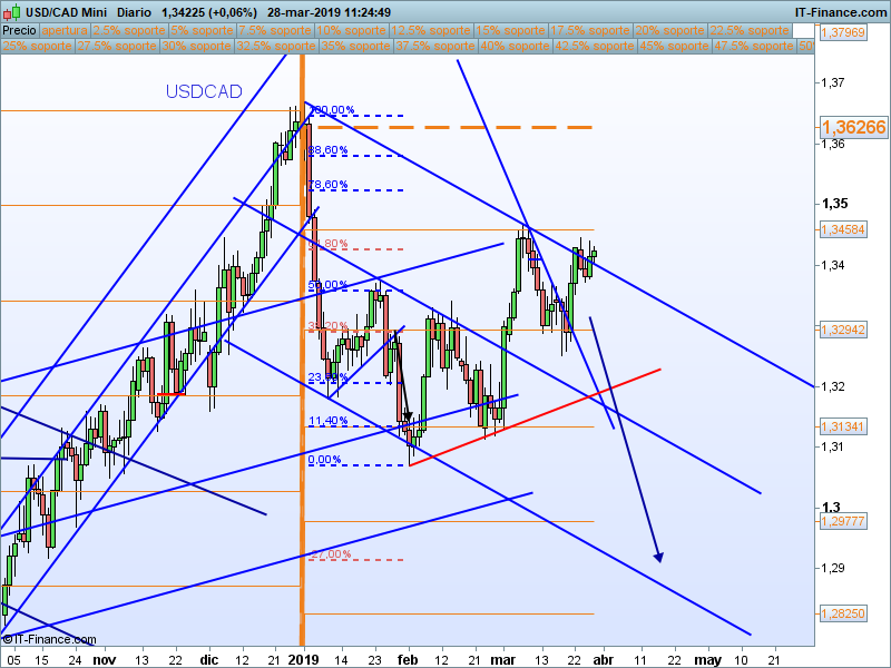 Por debajo de 1.3458 mantenemos la estructura bajista, puede ser un buen punto para buscar incorporaciones, la otra alternativa debe ser ver cierres por debajo de 1.3294