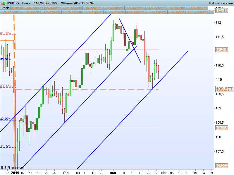Hemos tenido rechazo en el PAA, por lo tanto, mientras sigamos por encima de este nivel, objetivo en el 111.048. Si perdemos el PAA camino despejado hasta el 108.32