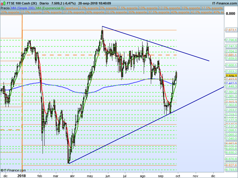 Traemos hoy otros de esos valores a los que no le hacemos un seguimiento público diario, pero que tenemos muy presente en nuestra operativa. El FTSE 100, índice principal del Reino Unido.